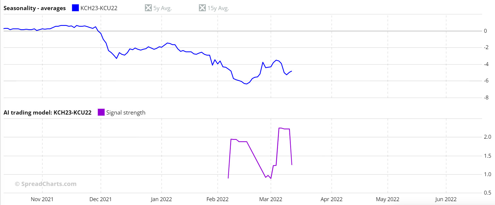 My analysis has come to an end. Before drawing conclusions, I want to go back to the beginning of the article and show you the SpreadCharts signal regarding the KCH23-KCU22 spread.