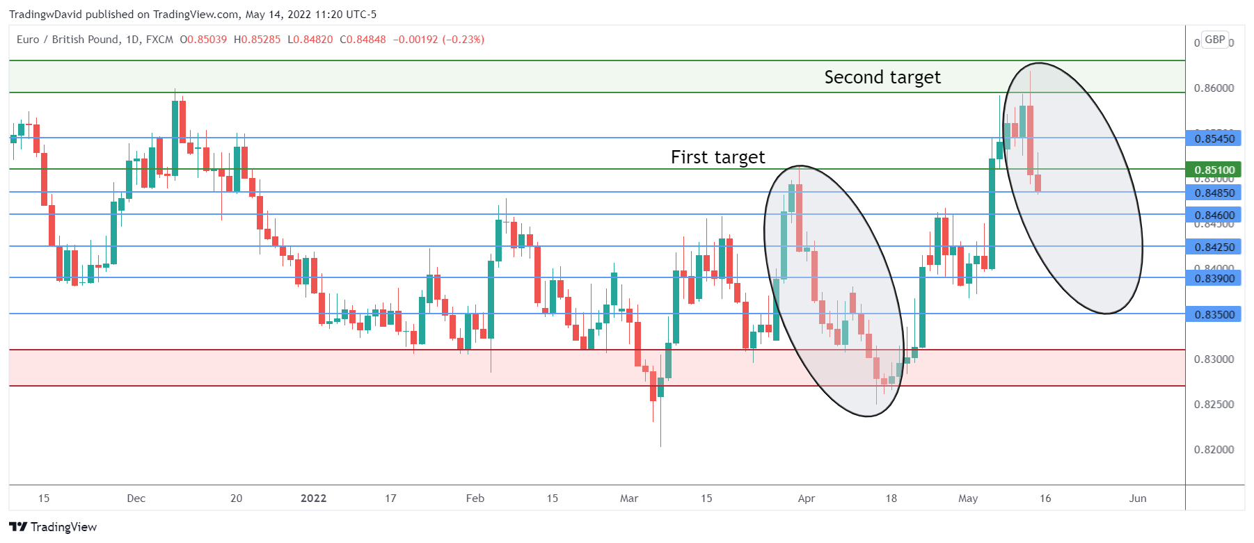 On Thursday, Eur-Gbp also reached its second target. I am not writing this article to self-congratulate, to tell you how good I am. I do so because I want to make a few considerations that you should not