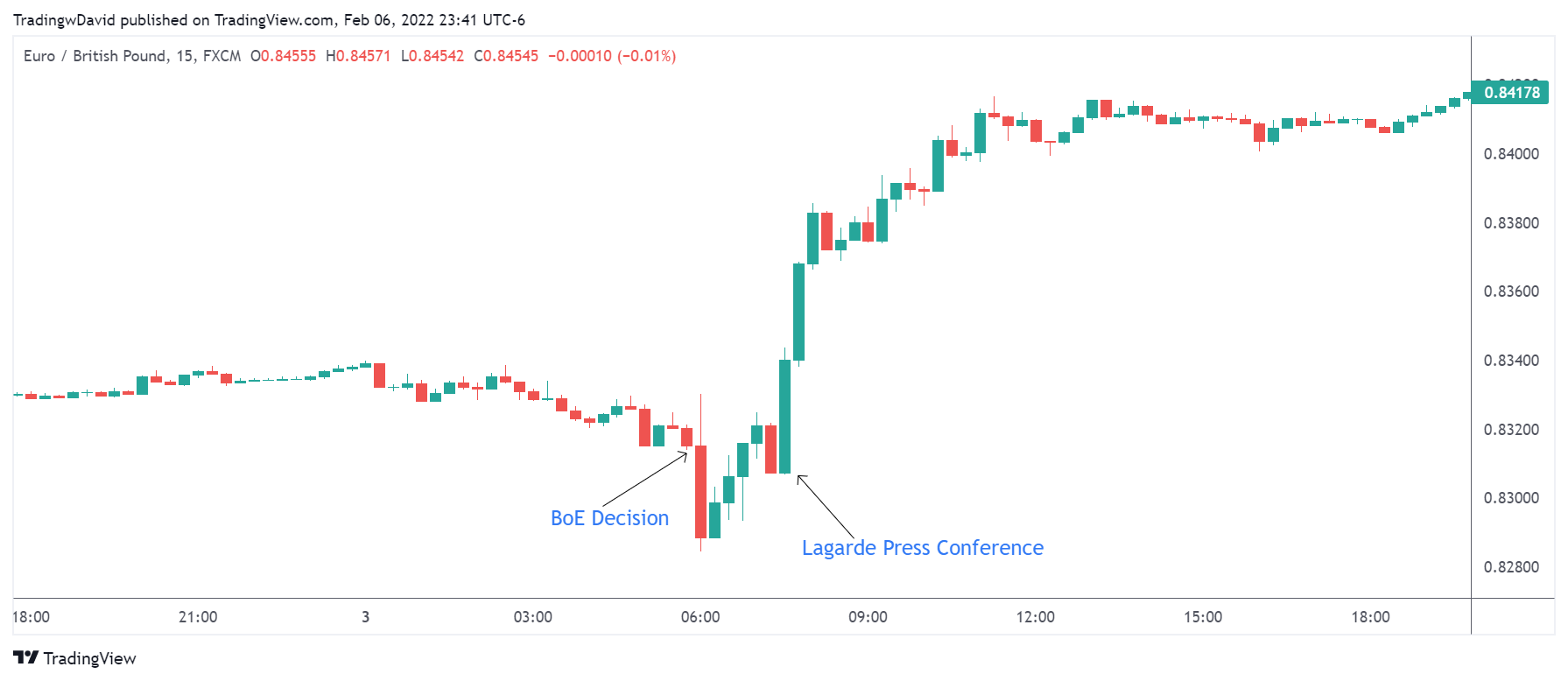 After seeing what the two meetings left us with, I will show you graphically what happened on the 15-minute chart of Eur-Gbp.