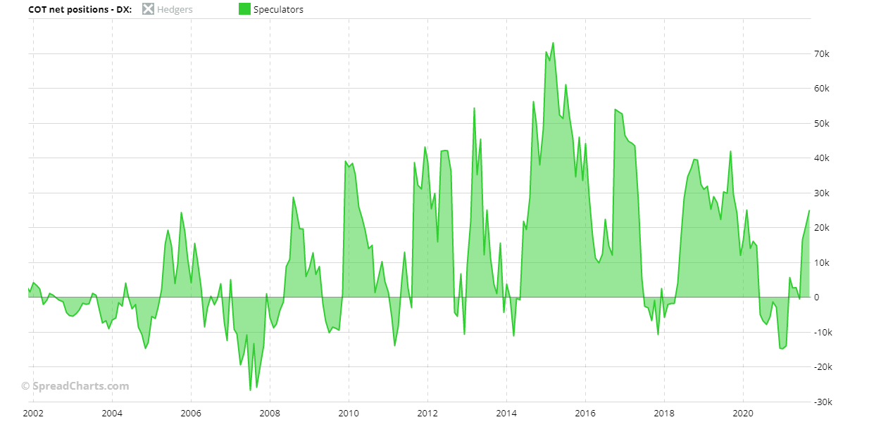 En fait, de juin à fin septembre, la position nette des "Speculators" est passée de -453 à un peu plus de 25 000. Une grande partie d'entre eux a donc déjà pris une position longue sur le dollar.
