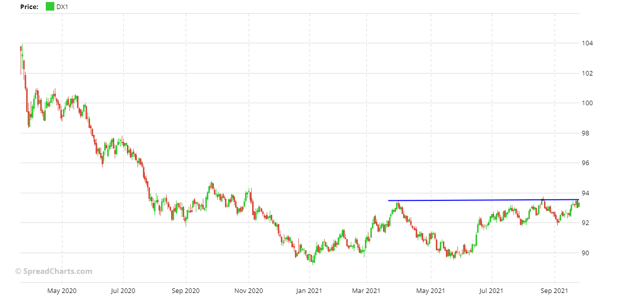 Ci-dessous, vous pouvez voir le graphique du Dollar Index (DX).
