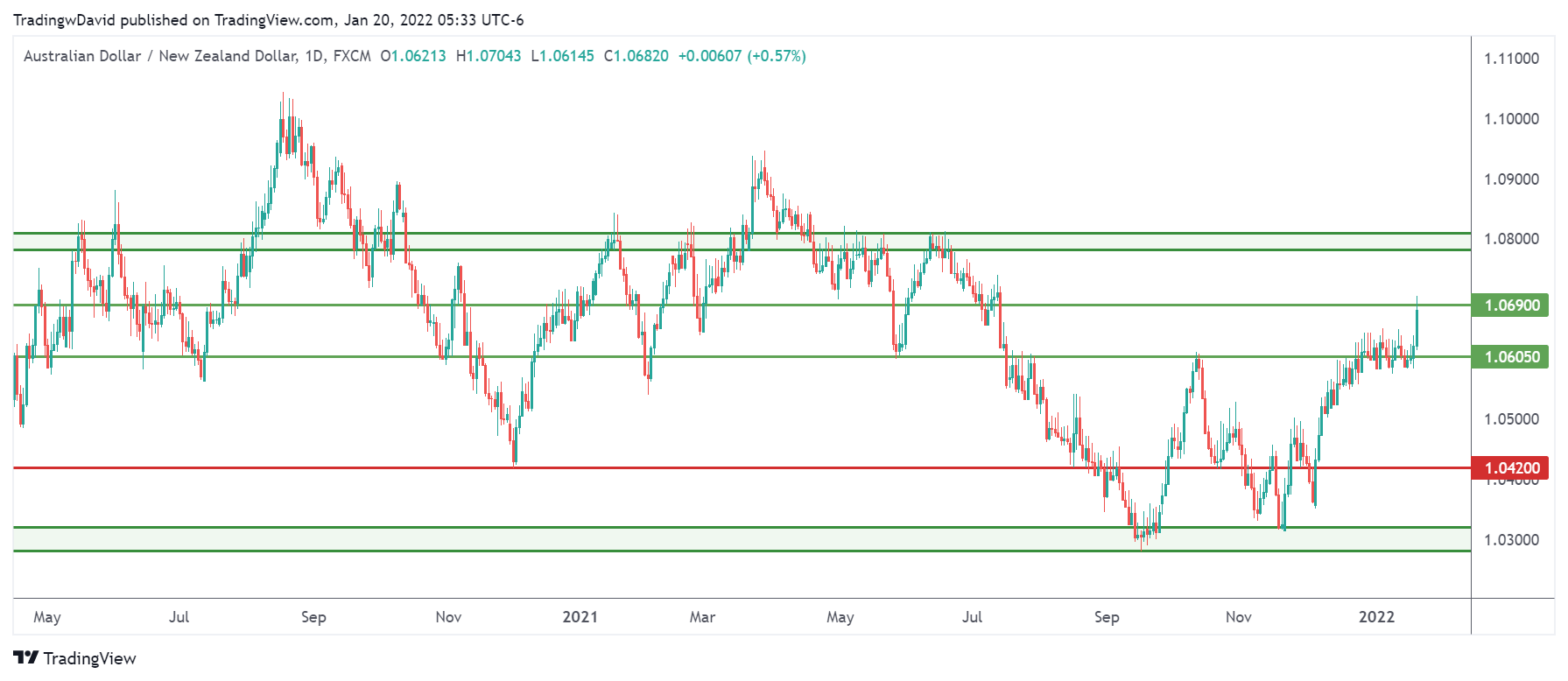 La seconda analisi è relativa a Aud-Nzd (Aud-Nzd, la mia visione rialzista). Sotto il grafico odierno.