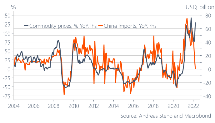 Een ander aspect zijn de blokkades in China waardoor de invoer is ingestort.