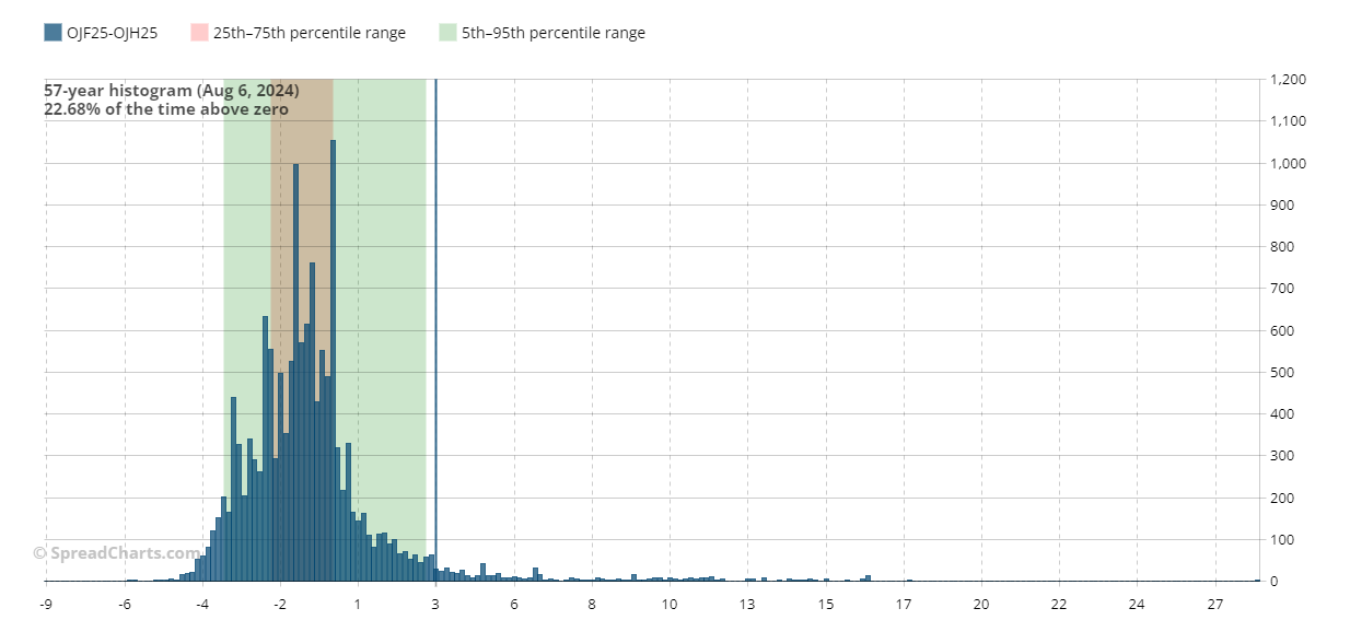 OJF25-OJH25 Seasonal patterns (SpreadCharts.com)